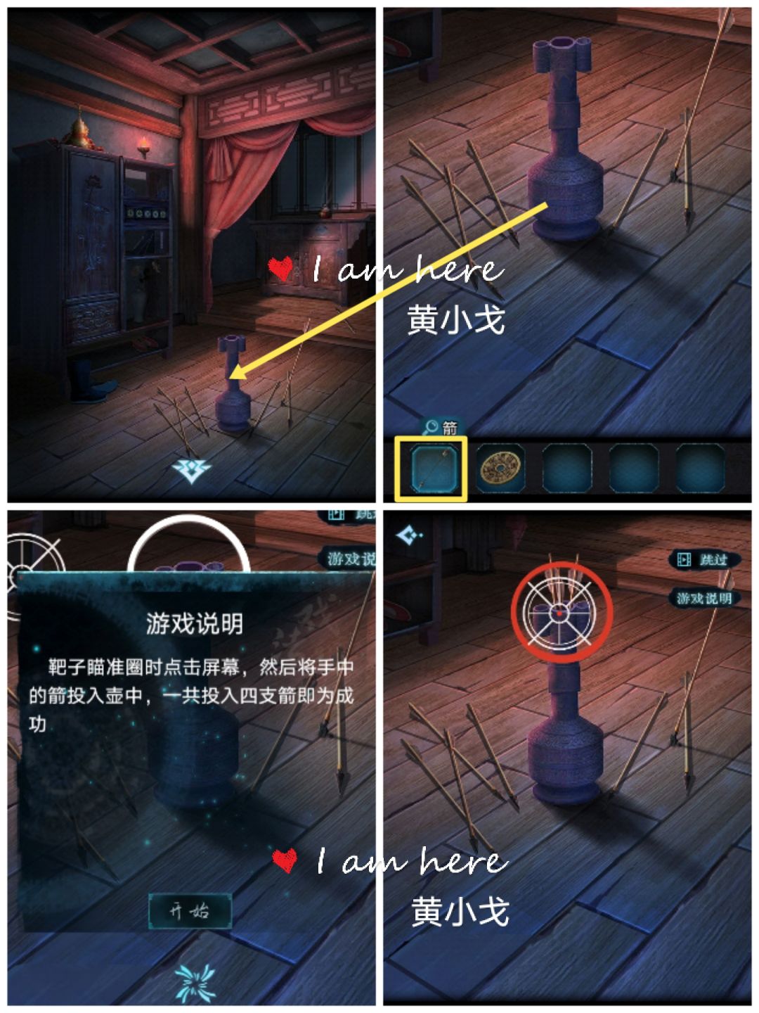 3.(二楼-左边房间)点击地上的投壶,使用【箭】,查看游戏说明,完成小游戏