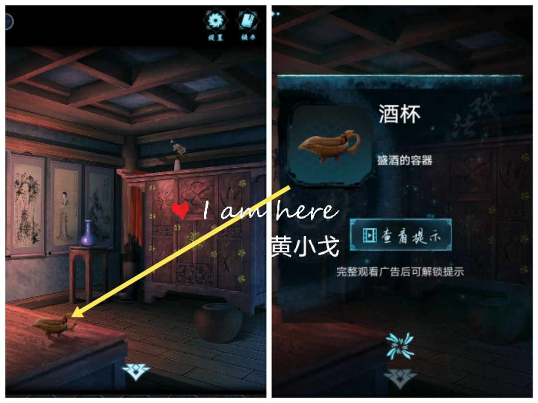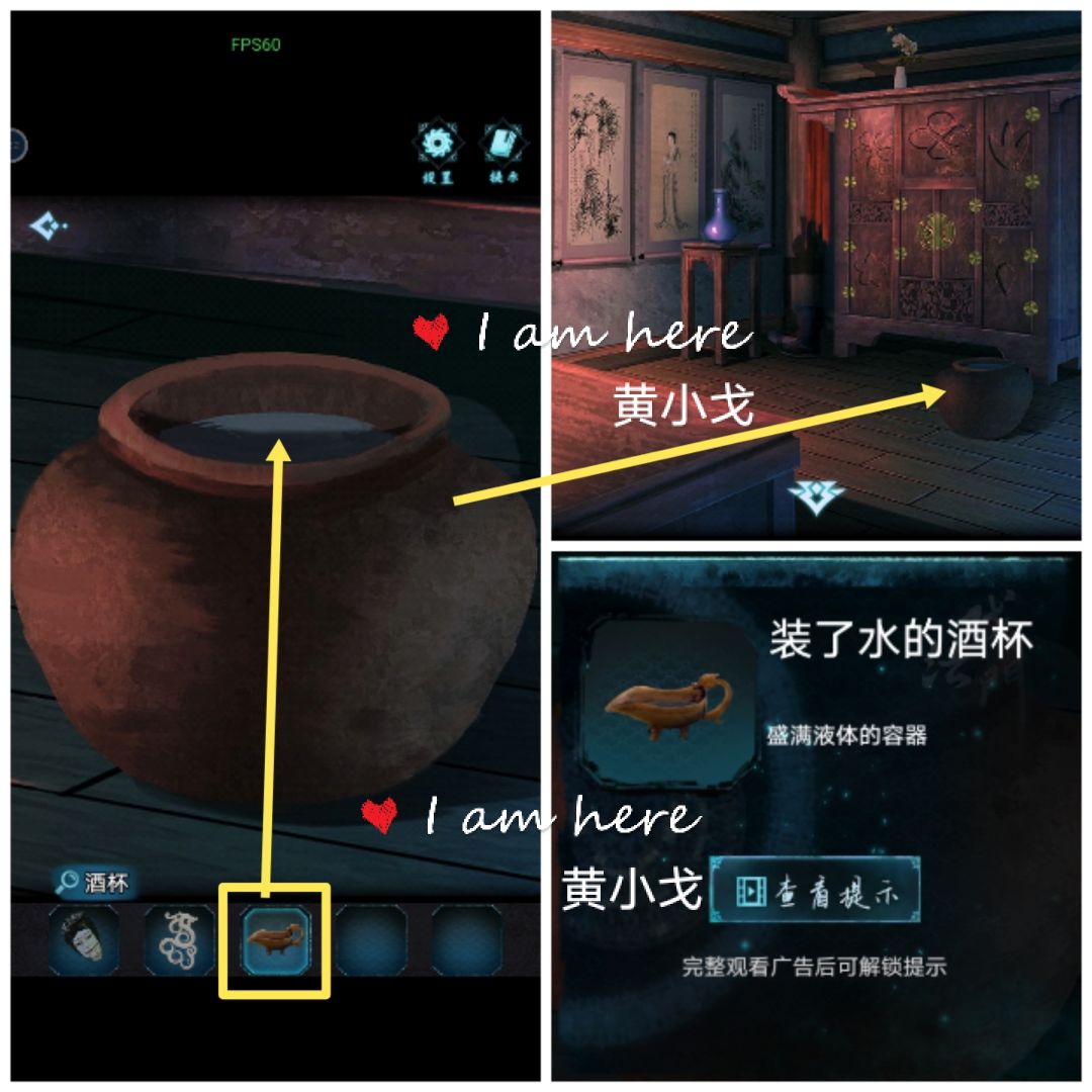 14.点击水缸,用【酒杯】装水,获得【装了水的酒杯】