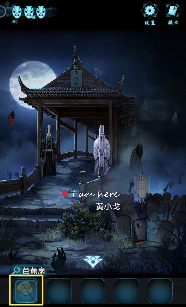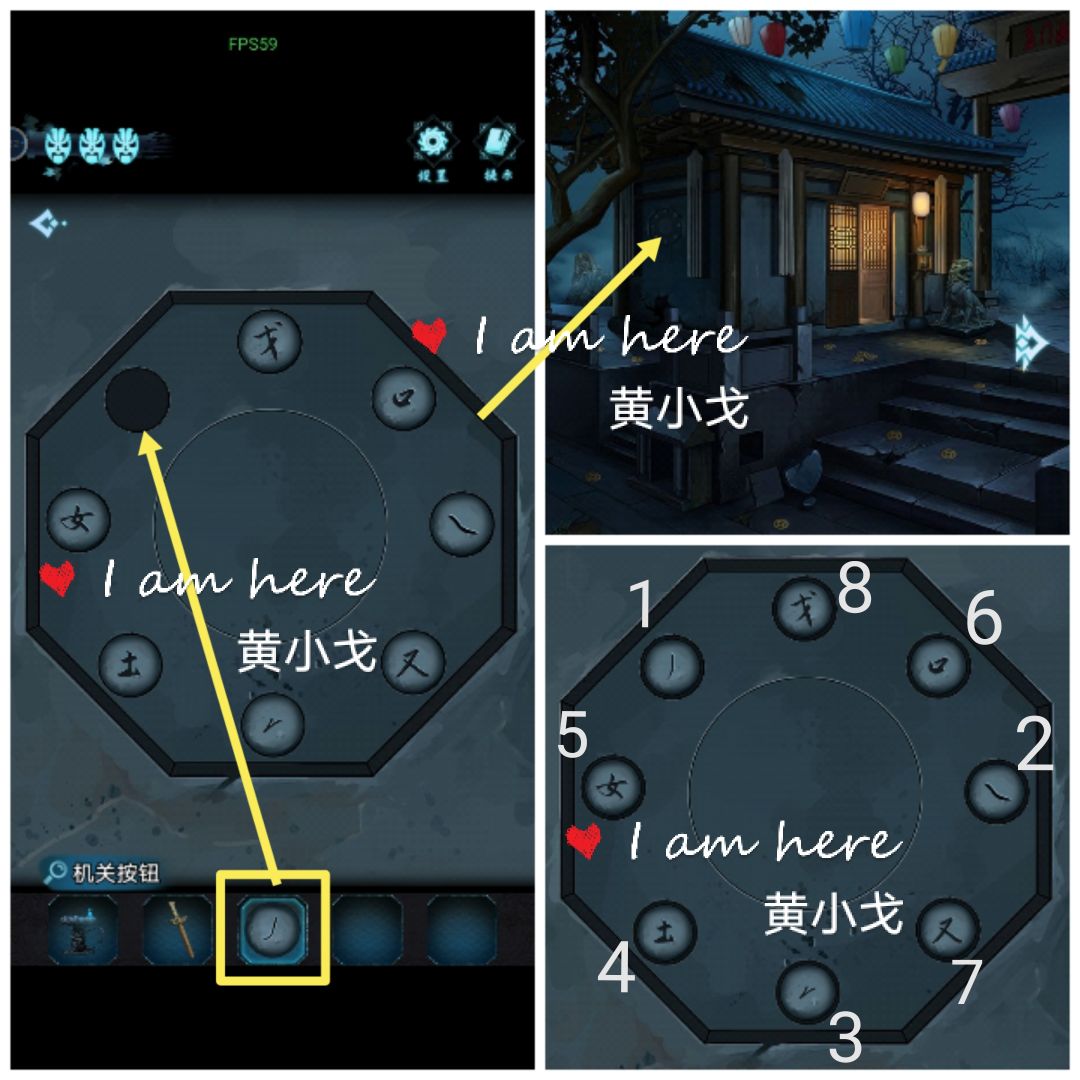 8.石灯打开,获得【桃木剑】和【机关按钮】,注意看柱子上的字:人生如戏