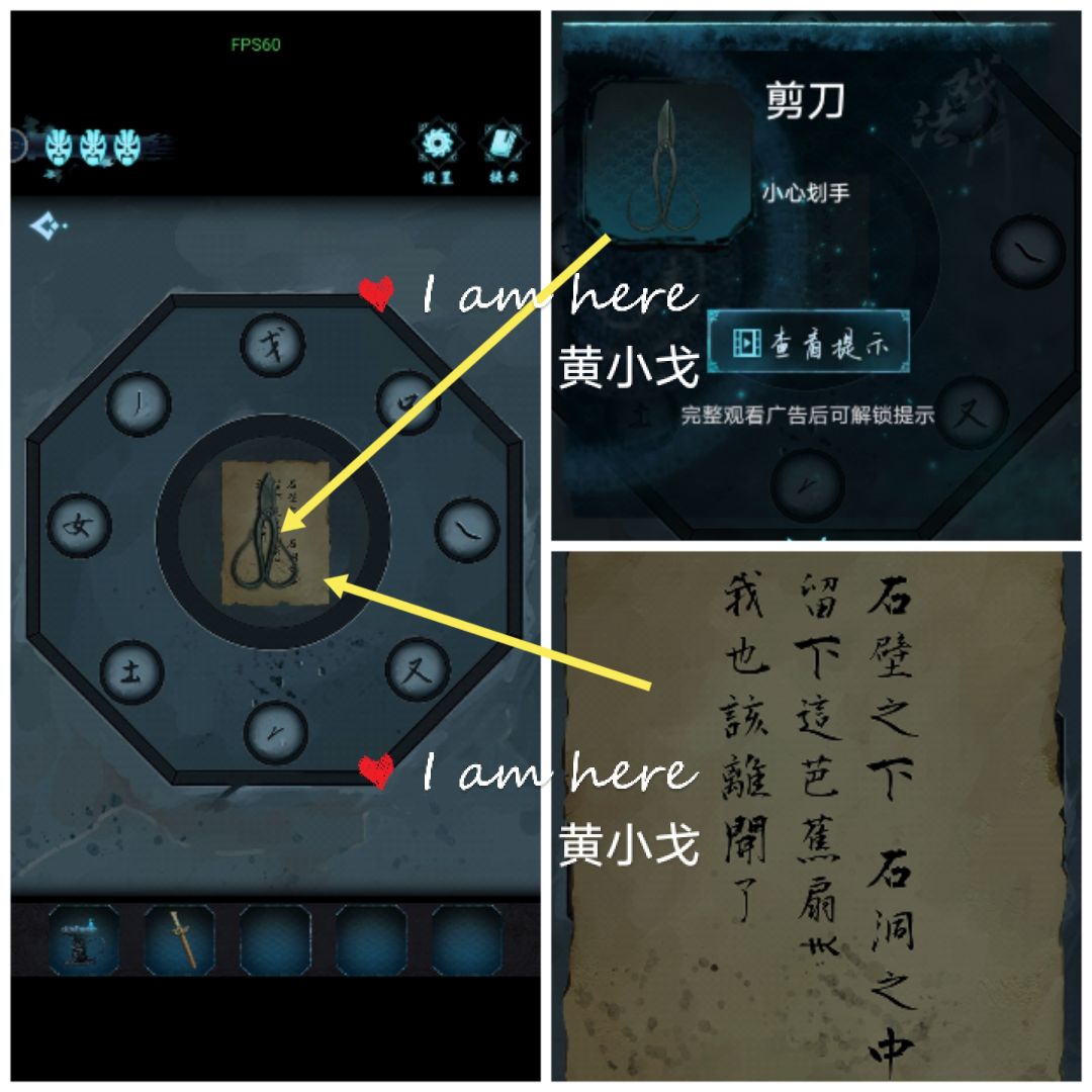 10.暗格打开,获得【剪刀】,查看纸条内容