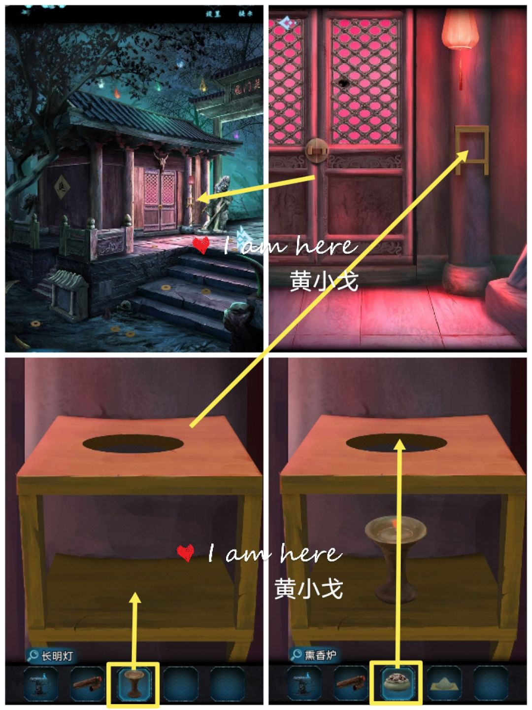 5.(鬼门关-左)点击石柱上的架子,放上【长明灯】和【熏香炉】