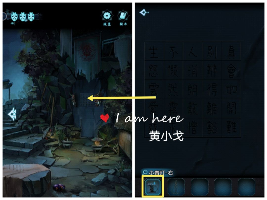 12.点击石壁上刻有字的机关,使用【小青灯-右】