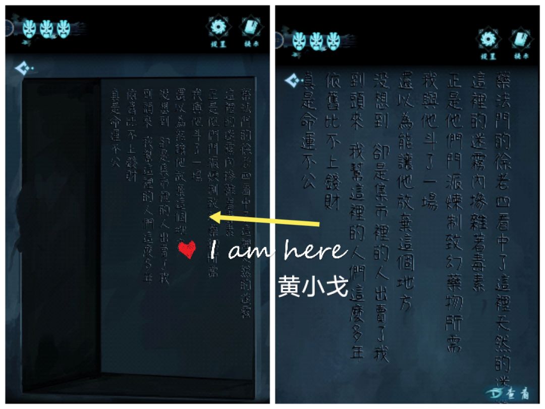16.(孟门渡-右)点击石壁,根据信上的红字,按下按钮(人生如戏、真假难辨、云消雾散、豁然开朗),暗门打开