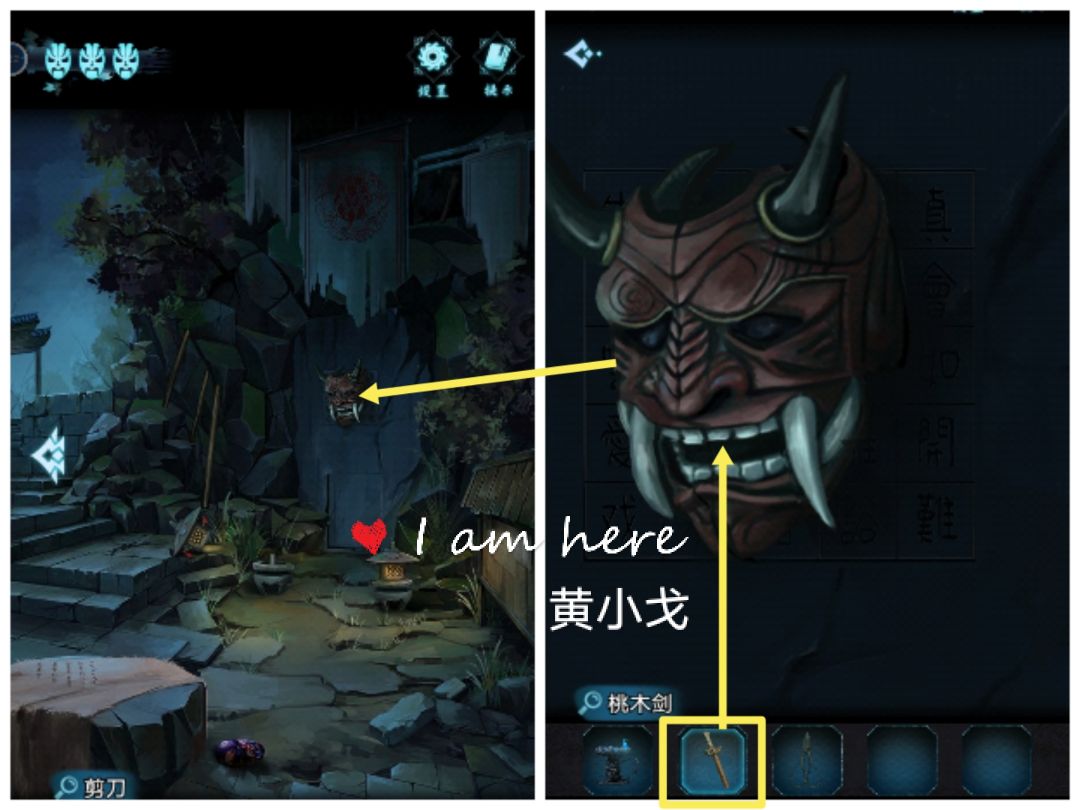 11.(孟门渡-右)点击面具,用【桃木剑】插入面具的嘴巴,触发机关