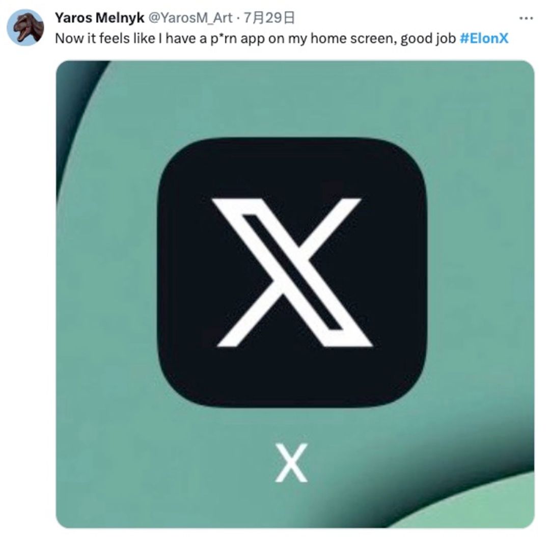 心情复杂。可能是我瞎,我确实没看出来这个X跟Art Deco有啥关系。我已经习惯了,每次打开网页都能看到蓝鸟飞翔,忽然这样换掉,觉得非常奇怪——这该不会是什么成年网站的入口吧?我是说,某些色情网站,不就特别喜欢X这个X那个吗?而且为了强调自己的低调,通常也会用黑色的。有这种疑惑的也不止我一个:”埃隆马斯克你做得好哇,现在看起来,我手机装了什么搞颜色的软件。“