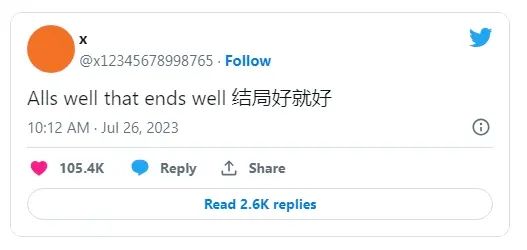 也有人很开心啦。就比如说第一个注册了x这个账号的用户,在一开始,他试图把这个账号的所有权以100万美元的价格,转让给马斯克,自己含泪小赚一笔。不过这份快乐并不持久——马斯克主动把这个账号封锁,把用户ID改成字母加乱码的形式,抢夺了原本的使用权。不过这个账号持有人表示,马斯克虽然没有给很多钱,但开出了一个无法拒绝的条件,所以他也没啥话好说,转让了相关的账号持有权。