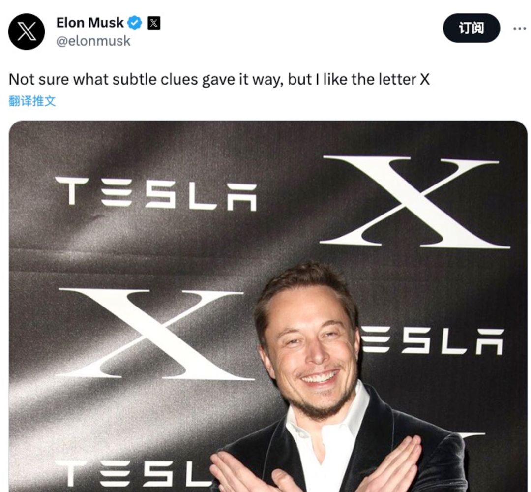 对于更换商标的动机,马斯克的解释是:“不确定是某种微妙的线索,但我喜欢字母X。“我仔细看了一下他创立或者控股的公司,特斯拉X,Space-X,x-AI,都有个X。提炼一下精华,就是:他喜欢X,他超爱X。