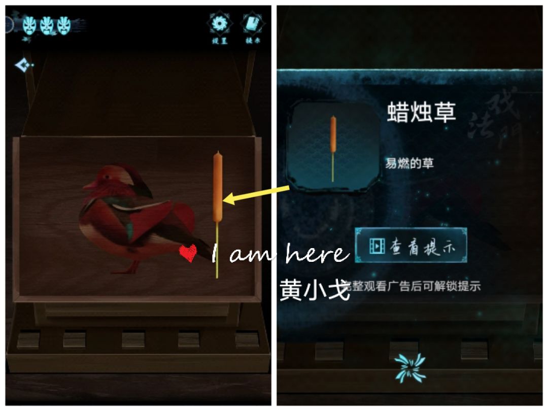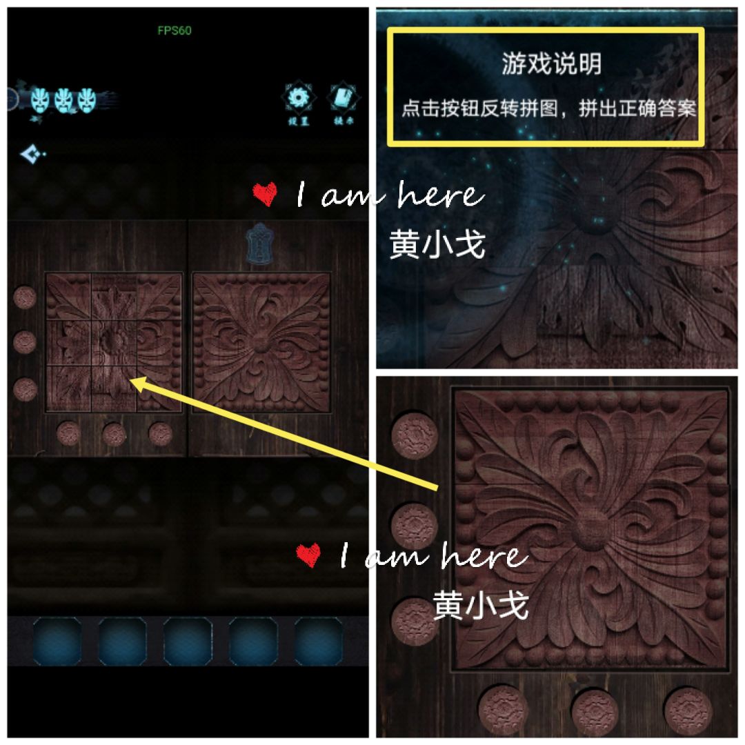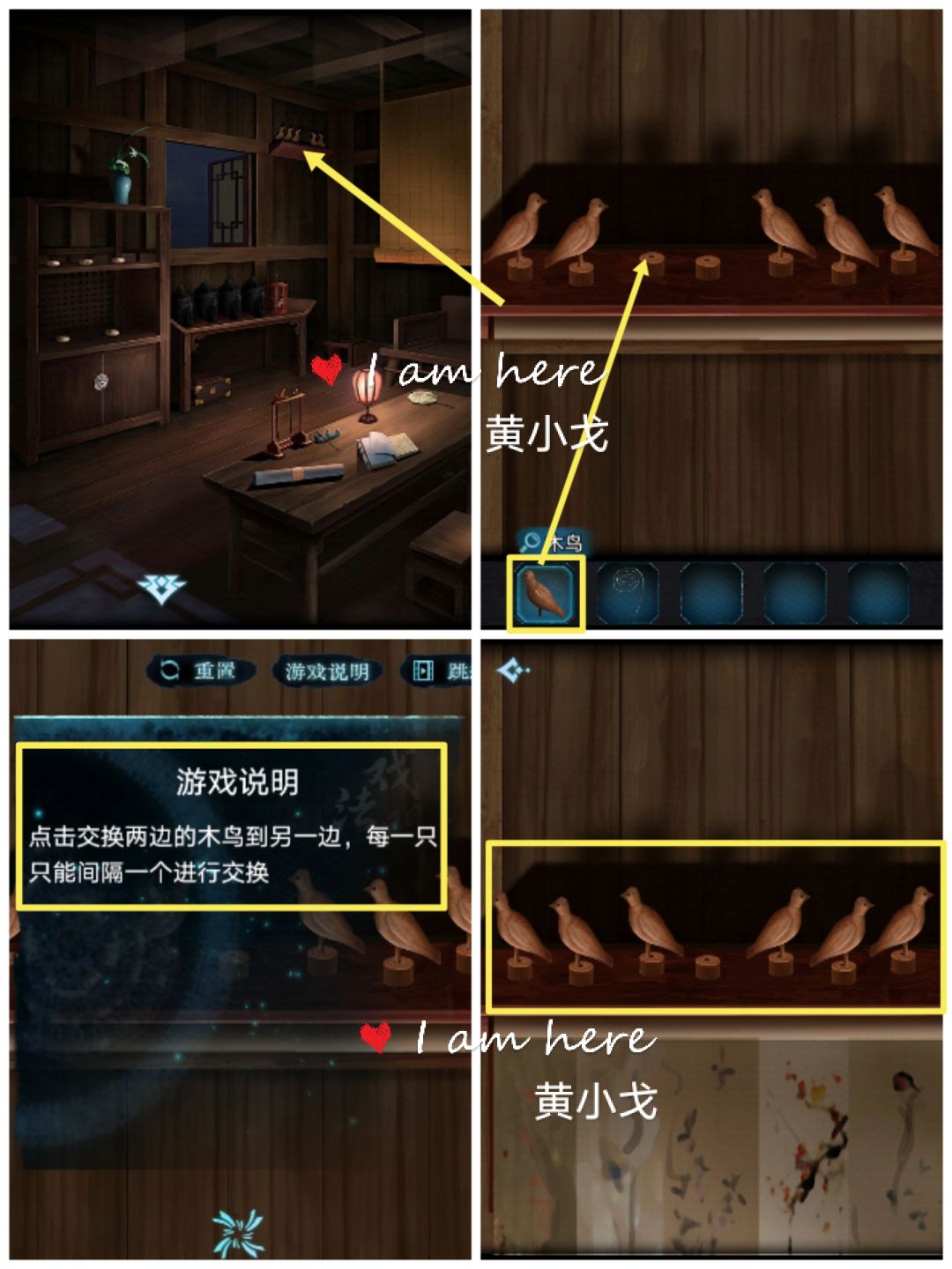 18.点击墙上的机关,放上【木鸟】,查看游戏说明,完成小游戏