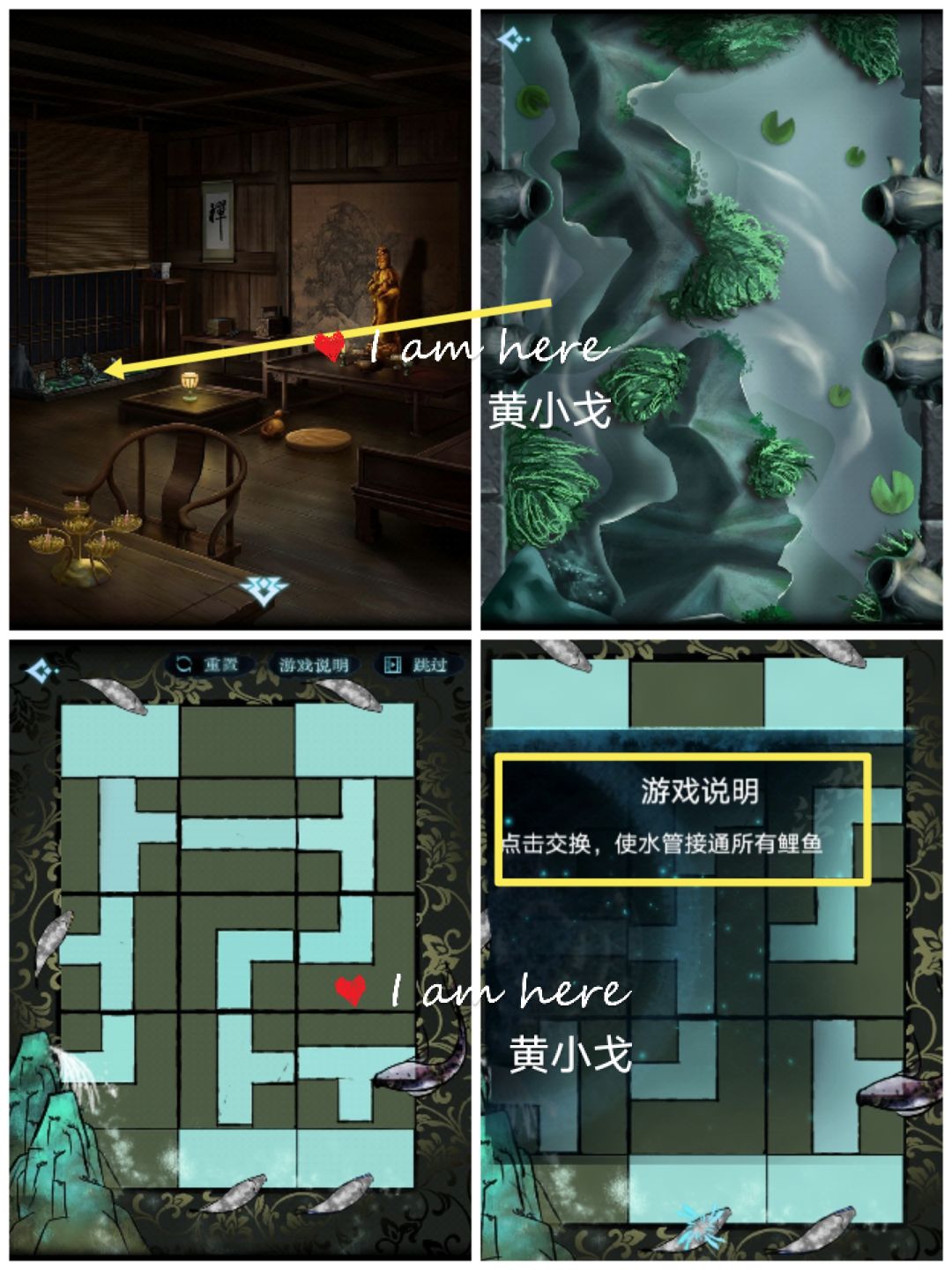 5.(左边房间)点击盆景,查看游戏说明,完成接水管小游戏