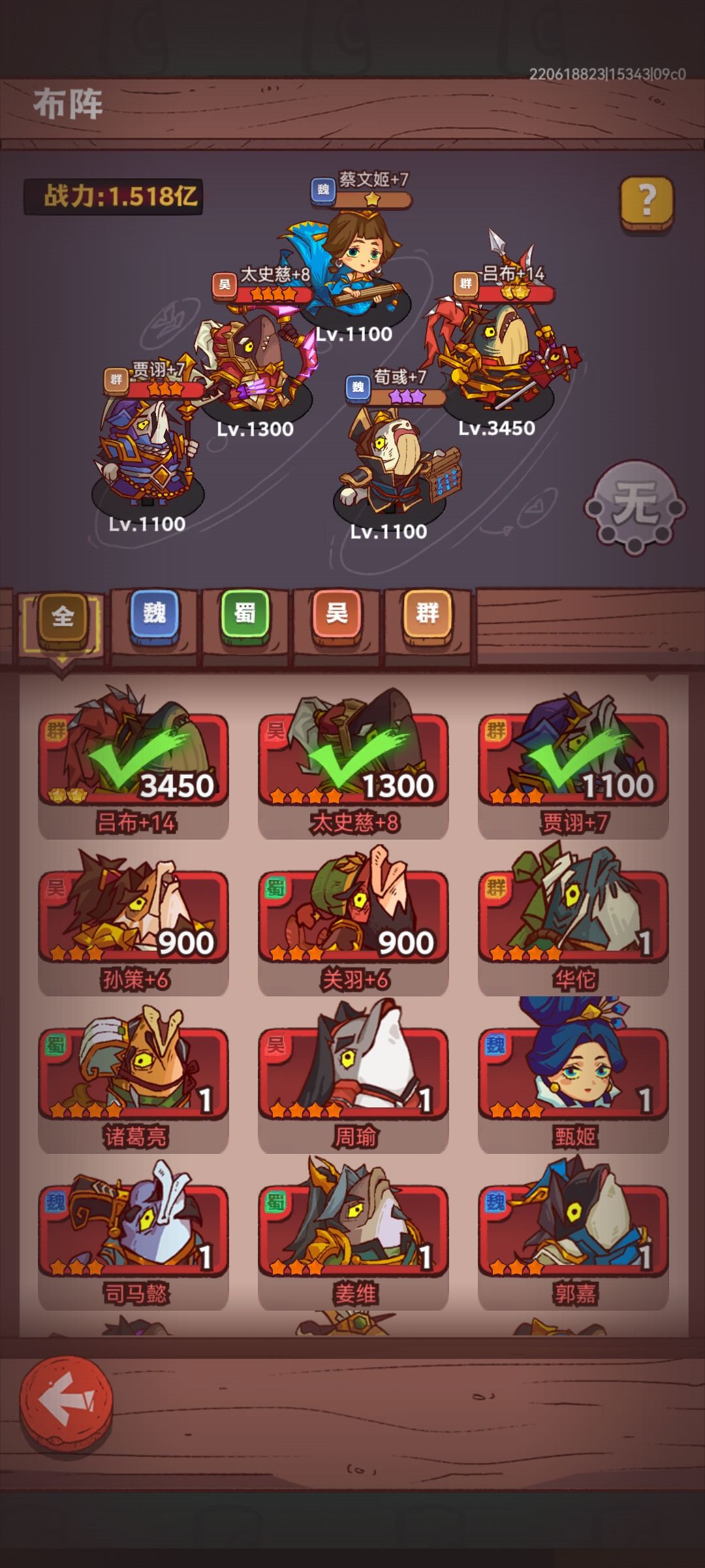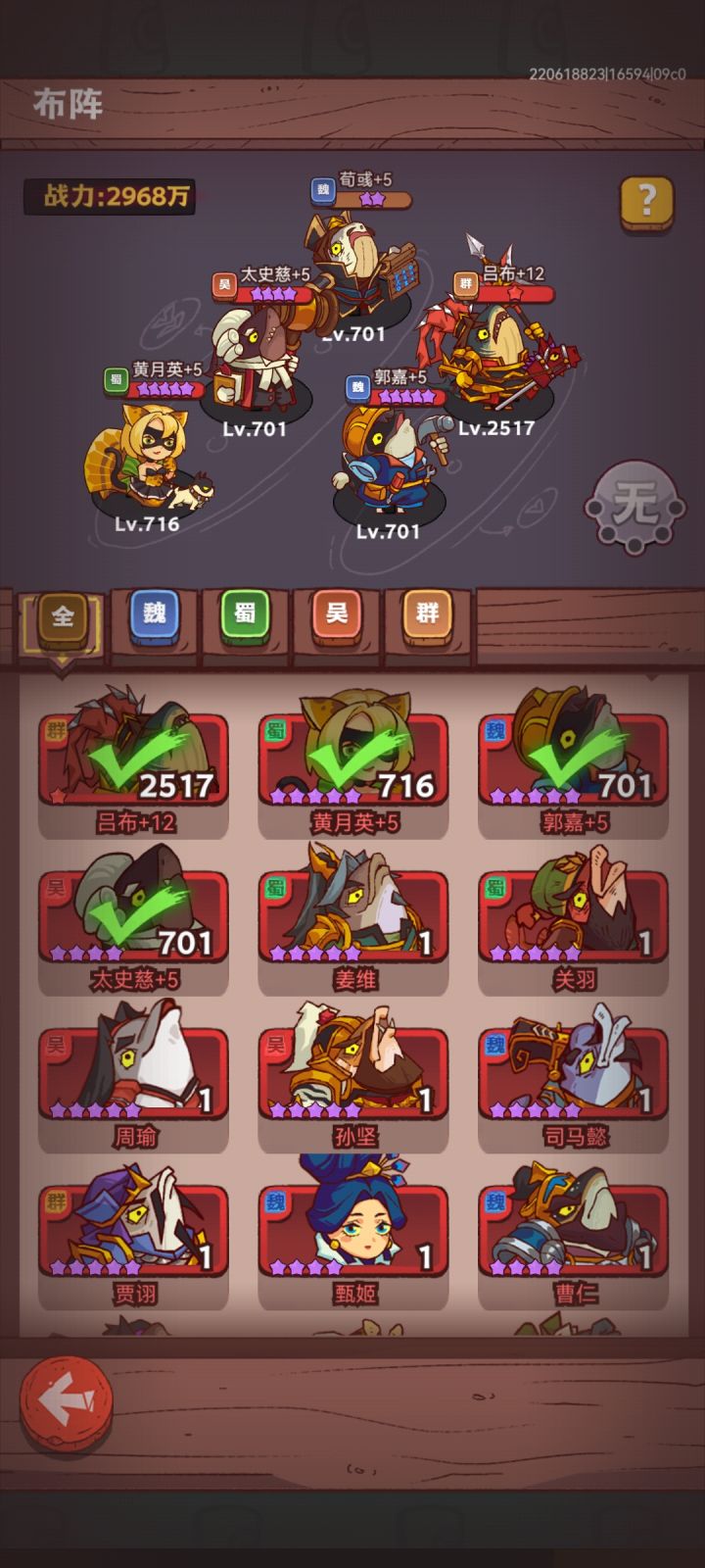 这套阵容只要吕布强度够挂件就是送死帮吕布增伤丶减伤,剩下的就看运气,一般10倍左右都能过。