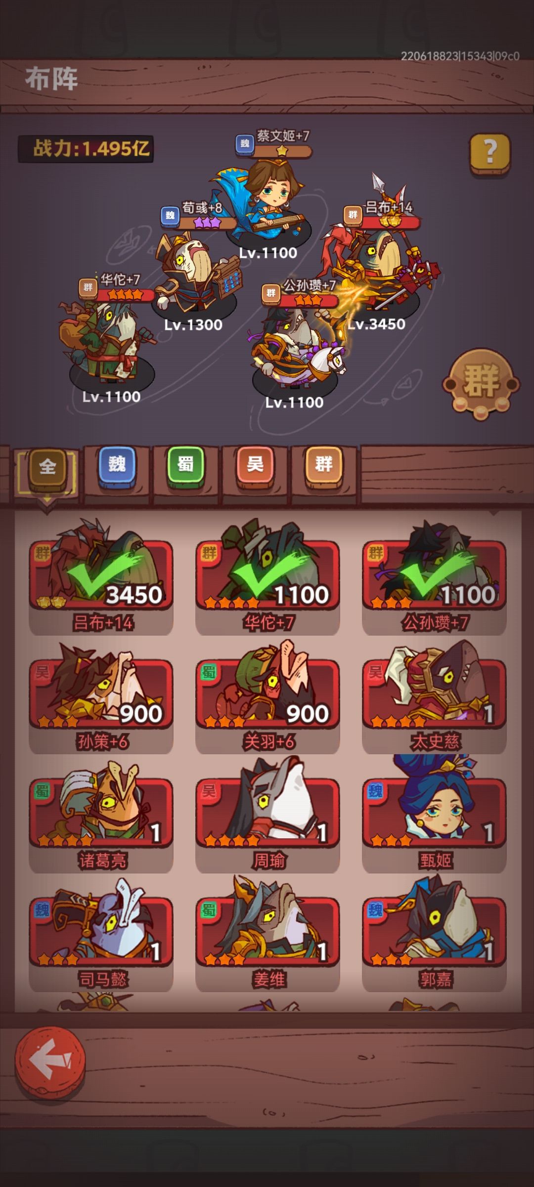 爬楼阵容只说一个:吕布丶公孙瓒丶华佗丶荀彧丶贾诩(蔡文姬丶夏侯惇)。