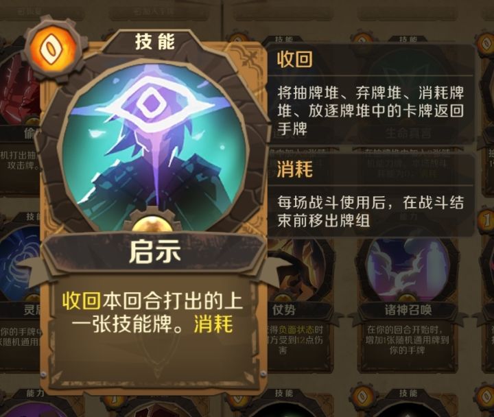 卡牌:符文牌『重塑符』任意品质,技能牌『启示』镶嵌符文牌『消耗符 Ⅲ』。