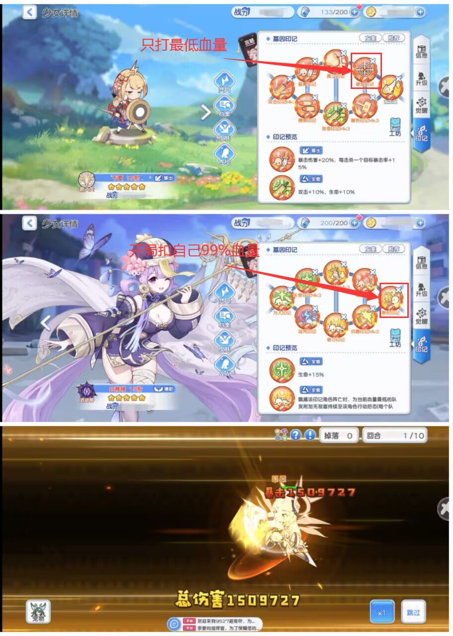 不仅仅是哀怜哦,陌陌还去测试了破敌印记(破敌印记:单体输出少女的所有攻击优先攻击敌方当前血量百分比最低的目标),但携带破敌的少女居然也抛弃最低血量的角色去攻击露妮娅了!