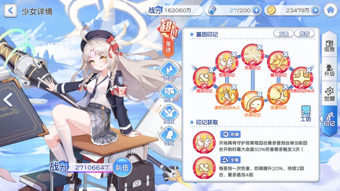 耀光印记(超凡)【强烈推荐★★★】印记效果:我方少女释放特殊技后,印记携带者获得15%伤害加成、减伤加成持续2回合,上限2层(每个队伍限佩戴3个)