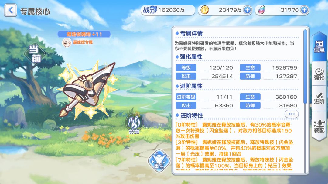 专属核心特性其实很简单,简单来说就是在露妮娅开技能的时候会概率追加一次特殊技,概率随专属核心的等级提升而提升[闪金堕落]。