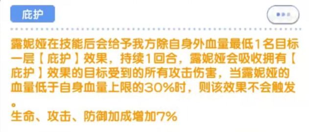 有这样一个超凡印记能够直接触发【庇护】效果,持续两回合,能够大大提高露妮娅的保护能力。