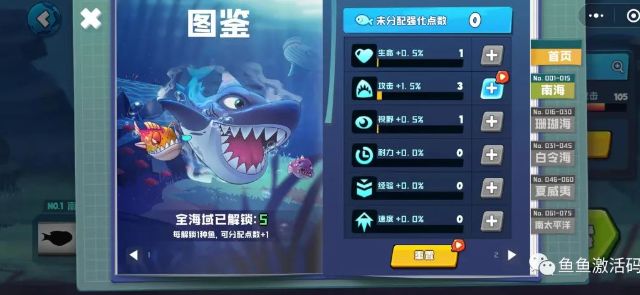 二、提升方式通过吞噬相对应的鱼类数量解锁鱼类,获取技能点,提升技能