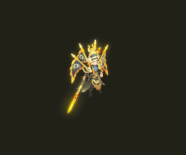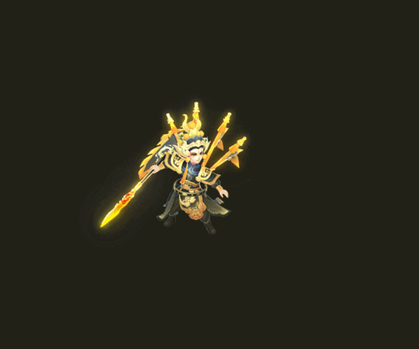 战斗下的项羽更加勇猛攻击时长枪刺出、金光闪现动作潇洒利落、枪枪致命,施法时集天地灵气于一身,阵阵光圈聚集脚下还伴随有峦山祥云气势恢宏、威严高贵