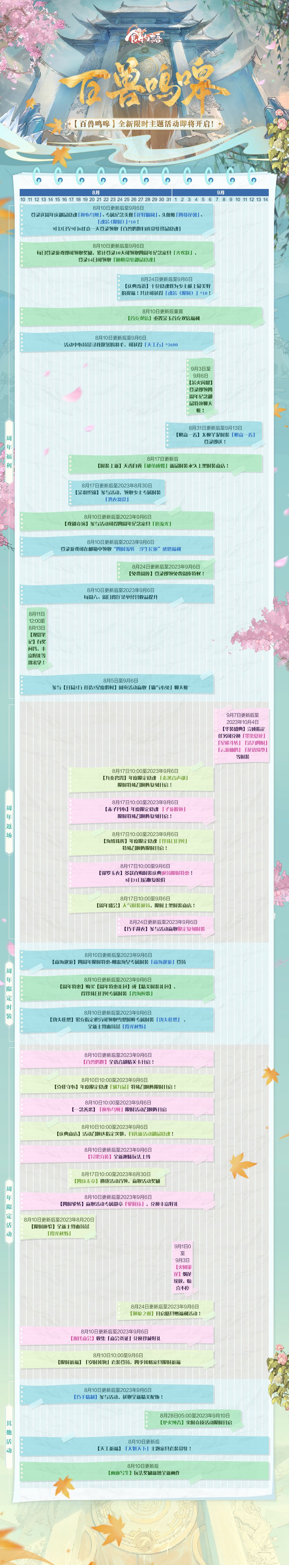 全新限时主题活动#百兽鸣嗥#将于明日开启!现为少主奉上活动日历。