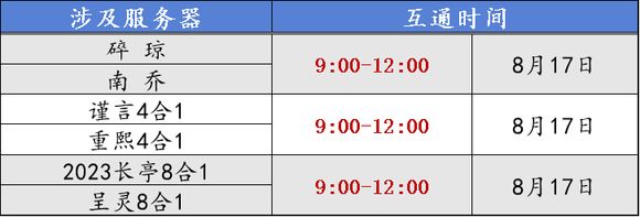 【官方公告】8月17日数据互通公告