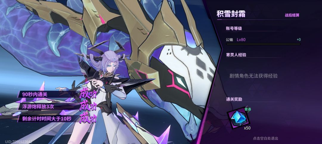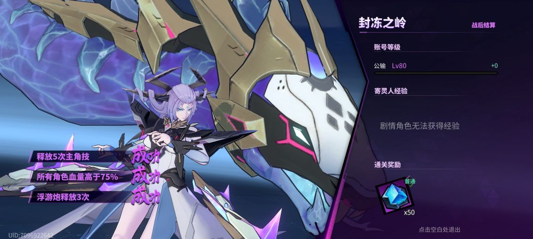 第二关,同样没难度,主角技cd回复的比较快。三星条件有一条为浮游炮释放三次,释放浮游炮有很多方法,不过最方便的还是主角技,所以记得释放三次以上的主角技再通关。
