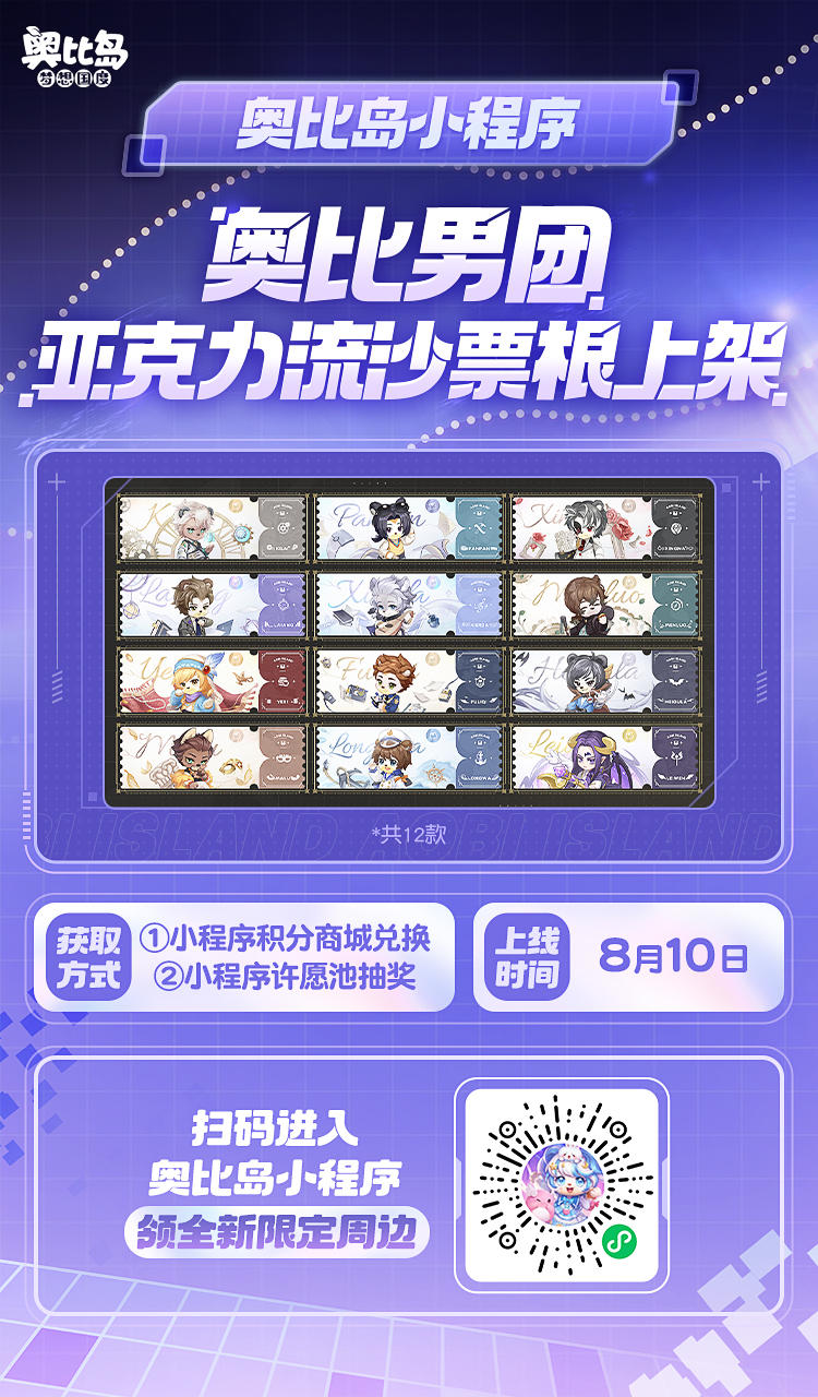 ⭐奥比男团亚克力流沙票根上架敲帅敲米的奥比男团亚克力流沙票根上架小程序啦~小奥比们可以通过小程序积分商城兑换,也可以前往小程序许愿池抽奖获得,全新限定周边等你领取。