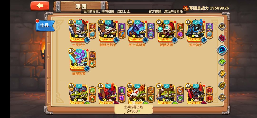 零氪党,现在总算有资源发展兽族了,但是天梯又只能上15个兵种。现在的情况就是 60双孔的麒麟,专属骨弓 这两个兵种不想放弃。但是确实是没他俩的位置,哥布林全员专属舍不得下,恶魔阵容感觉每个都很重要,缺一个都会战力大幅下降,只能来兽族替代,那么