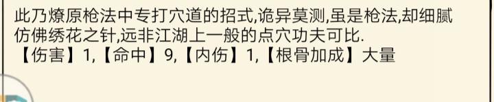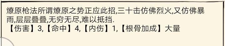 简析:平民燎原枪法玩法,缺点是耗内严重,持久力差。