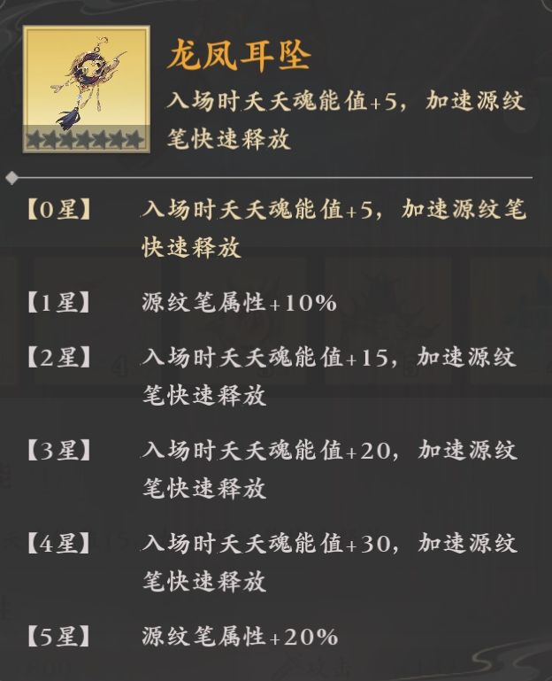 龙凤耳坠能够让夭夭快速的赞够魂能值释放源纹笔技能,达到一种抢先手的作用,若达到4星则可以开局释放一个源纹笔技能,起到压制作用,为队伍提供优势的开局。