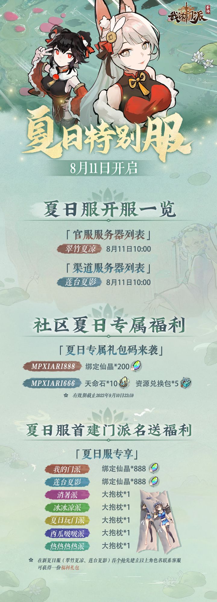 亲爱的掌门,《我的门派》夏日特别服将于明日开启!