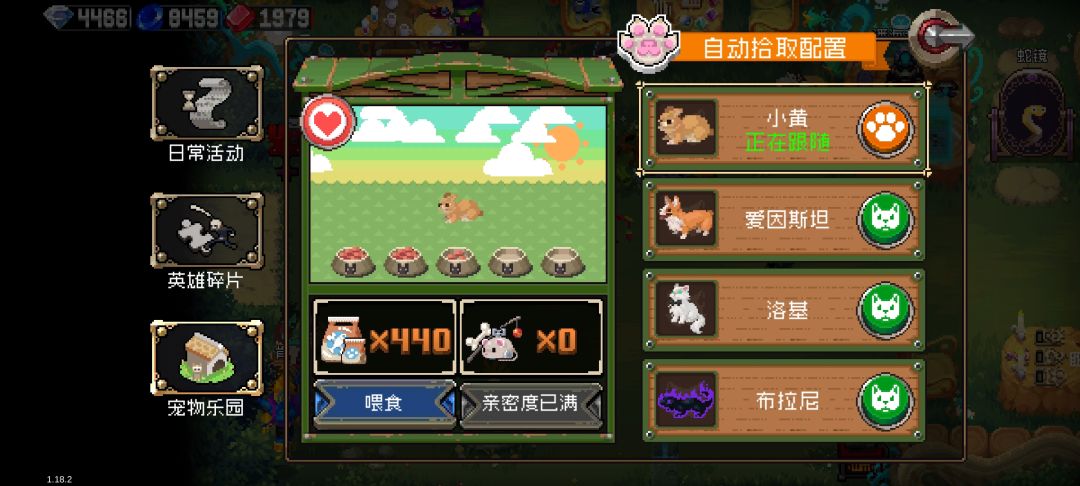 看了上一期的评论,果然还是感觉在金币收益这块不好随便乱改啊,我想了一下,与其把金币收益能力转移到宠物上,还不如出个新人道,效果是可以多喝一杯酒,接下来是一些新的想法。