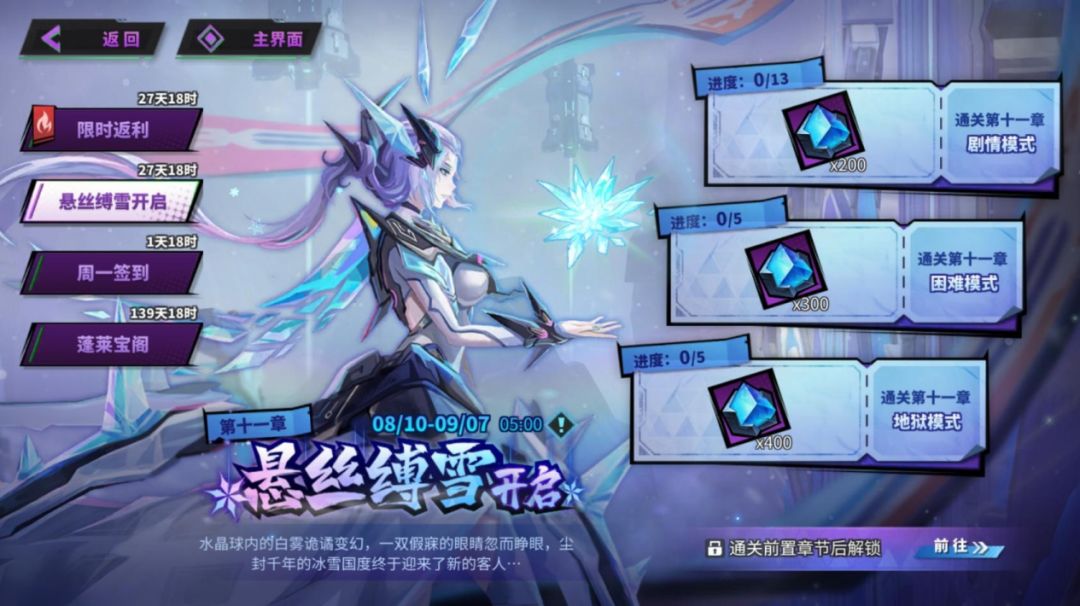 ※2023年9月7日5:00前分别通关三种模式,还可在“悬丝缚雪开启”活动页面中领取对应「魂晶」奖励。