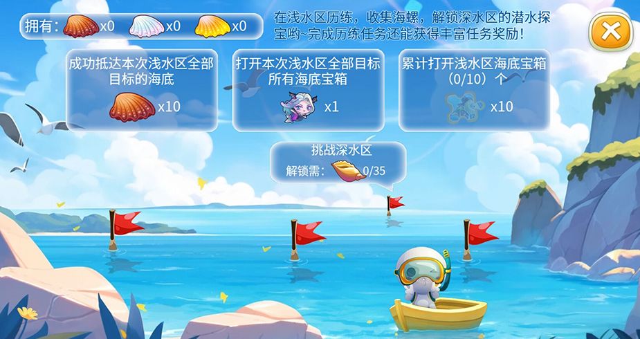 在浅水区还有其他任务可以完成哦,努力收集贝壳奖励吧~
