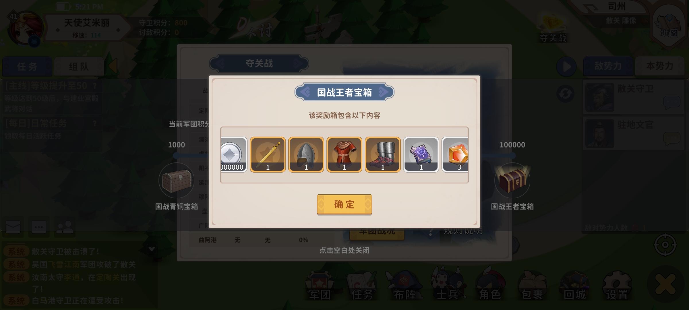 本次更新主要修复国战宫殿PVP进入战斗失败的BUG,并优化了国战战利品显示。