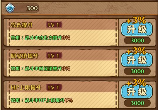 在营地可以对战斗时的初始站位进行编队,合理的战斗顺序和勇者站位绝对是获胜的关键。如果玩家不太清楚各位勇者的增益站位,可以点击角色进行查看。在编队界面可以通过战力点进行战前准备(战力点通过出街助战,完成悬赏,组队战斗等途径获得),可以提升攻击力,战斗中的恢复效果和血量上限,对战斗绝对是实打实的提升。