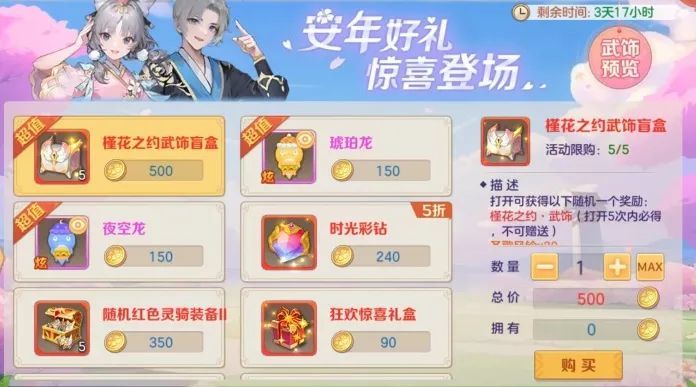 ✦槿花之约武饰盲盒、「呆呆龙」皮肤「琥珀龙」、「夜空龙」等珍稀道具限时上架,请不要错过哦!