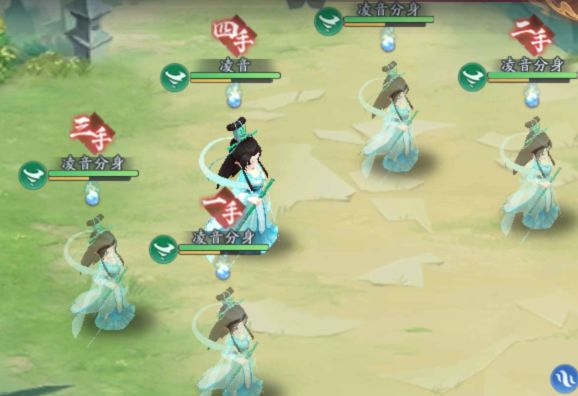 铃音开场就会招出4个分身,站位如上图所示,分身特性如下
