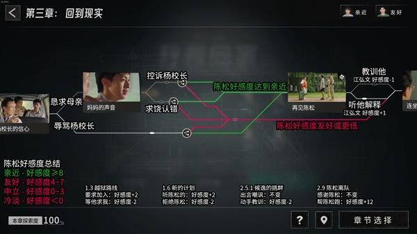 每节剧情里选项的顺序,是按时间线视图里的上下来排的,方便查缺补漏。有的时候它和选择选项时的左右顺序不一样,所以不要看错啦。选择以后导致的好感度数值变化(加粗部分),或者进入剧情分支,都会在选项后写出来,如果什么都没写就是无事发生,直接进入下一节剧情。