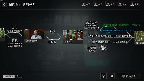 ★成功帮助江弘文掩盖后有2个分支,与5.6.1章节的选择有关。听完米医生的两个故事后,若选择都喜欢为上线(没有额外剧情),选择都不喜欢为下线(张扬告诉米医生找到了第三条路)。