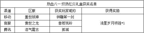 《世界OL》热血八一 炽热红炎礼盒获奖名单