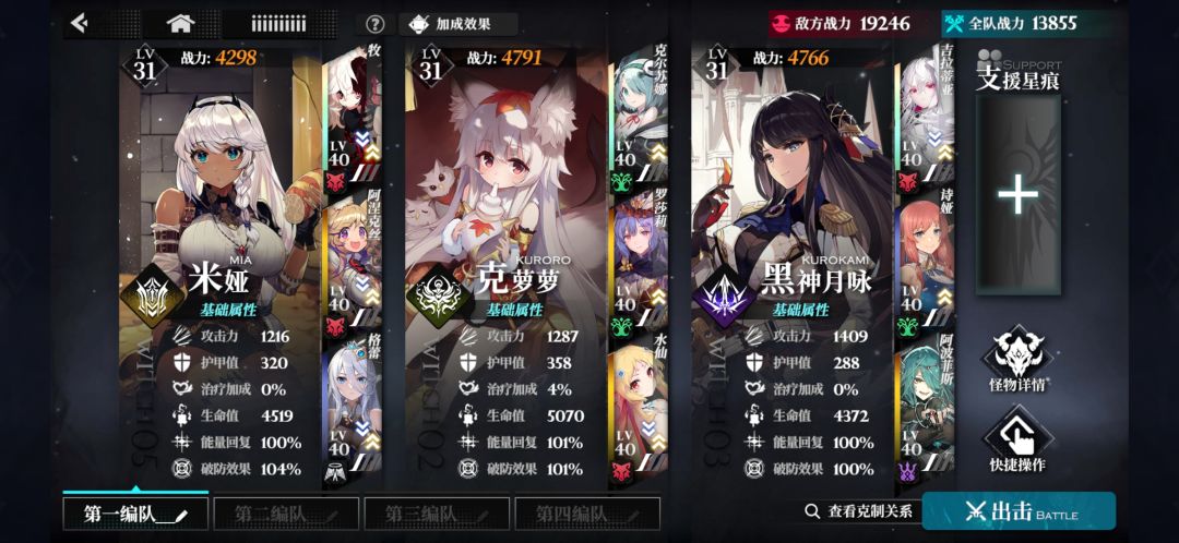 至于我为什么用了,治愈师,守护者,执剑人。很简单,便宜。这几个的连携条件分别是,侵蚀(核心星痕开局第2天签到送),虚弱(高效率虚弱机还是超级领域奶,新手三选一),感电(感电双核心,一个是三星神子格蕾,一个是四星阿克涅斯)。刚好形成了两两连携的理想阵容。