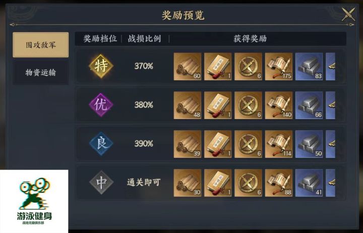 兵法演练会有两个不同的副本玩法,分别是“运输物资”和“围困敌军”每天自己只能发起游戏随机一种。根据终测的版本,“运送物资”模式更容易获得高奖励。更多游戏攻略请关注我们!