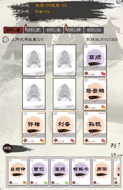5人(虎威之后):高顺、孙权、马妹、刘备、许褚
