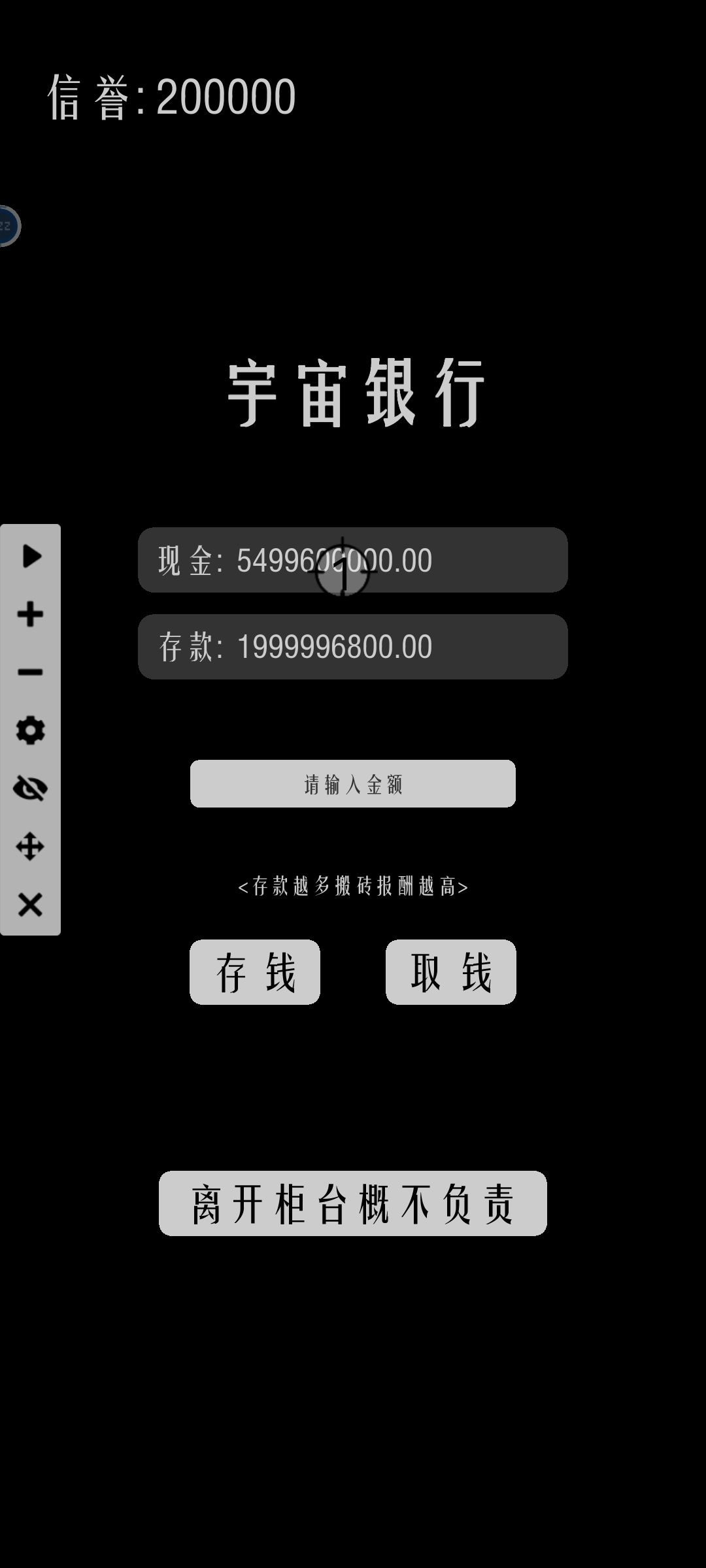 替作者解释一下:信誉和名气的效果相同,初始只能存10万。一个信誉一个存款可以多存一万