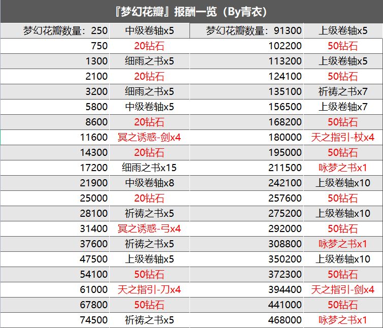 🔹【梦幻花瓣成就奖励】: