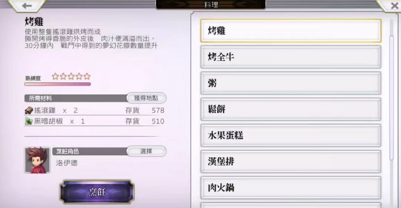 然后配合料理:烤鸡或者更高级的料理去野图拖地