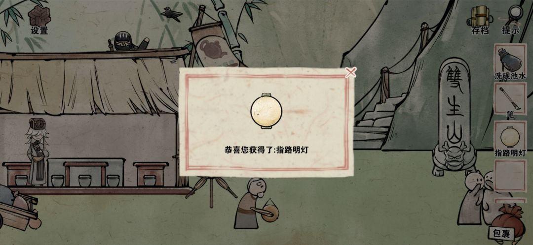 与其对话获得灯笼,之后就能上山了