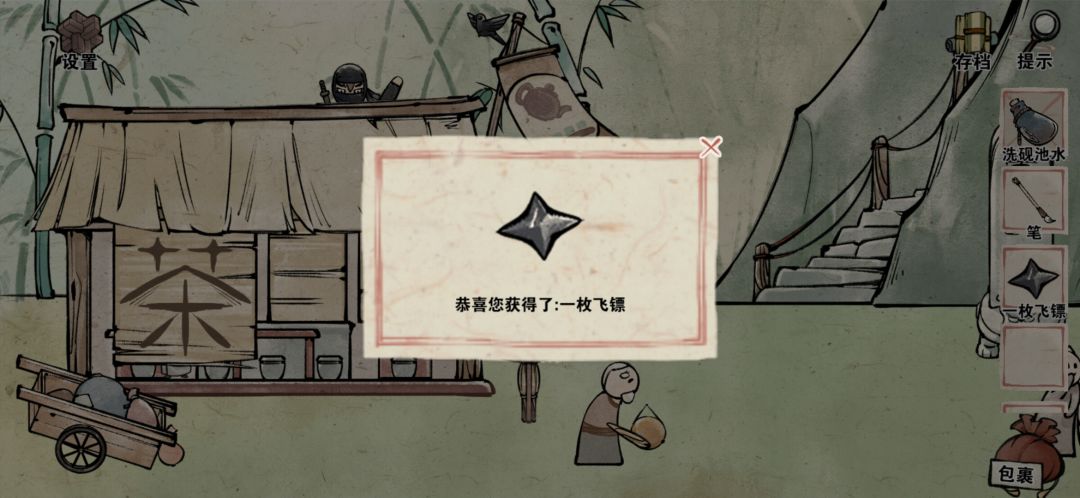点击鸟在刺客头上拉三次(),获得另一枚飞镖。两个飞镖和蓑衣都挂到稻草人上。