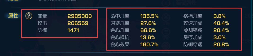 高级属性:右边框框的都是,其中核心的有:闪避、命中、会心几率、会心效果、会心抵抗、攻速加成、冷却缩减