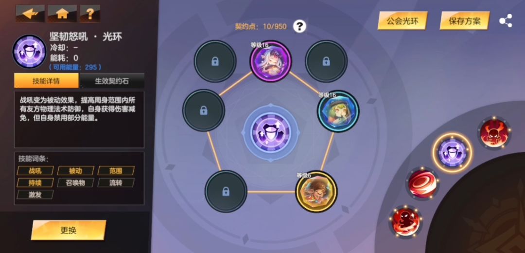 选择了几个守护契约石增加防御,没啥必须的,自己喜欢就好,不关键